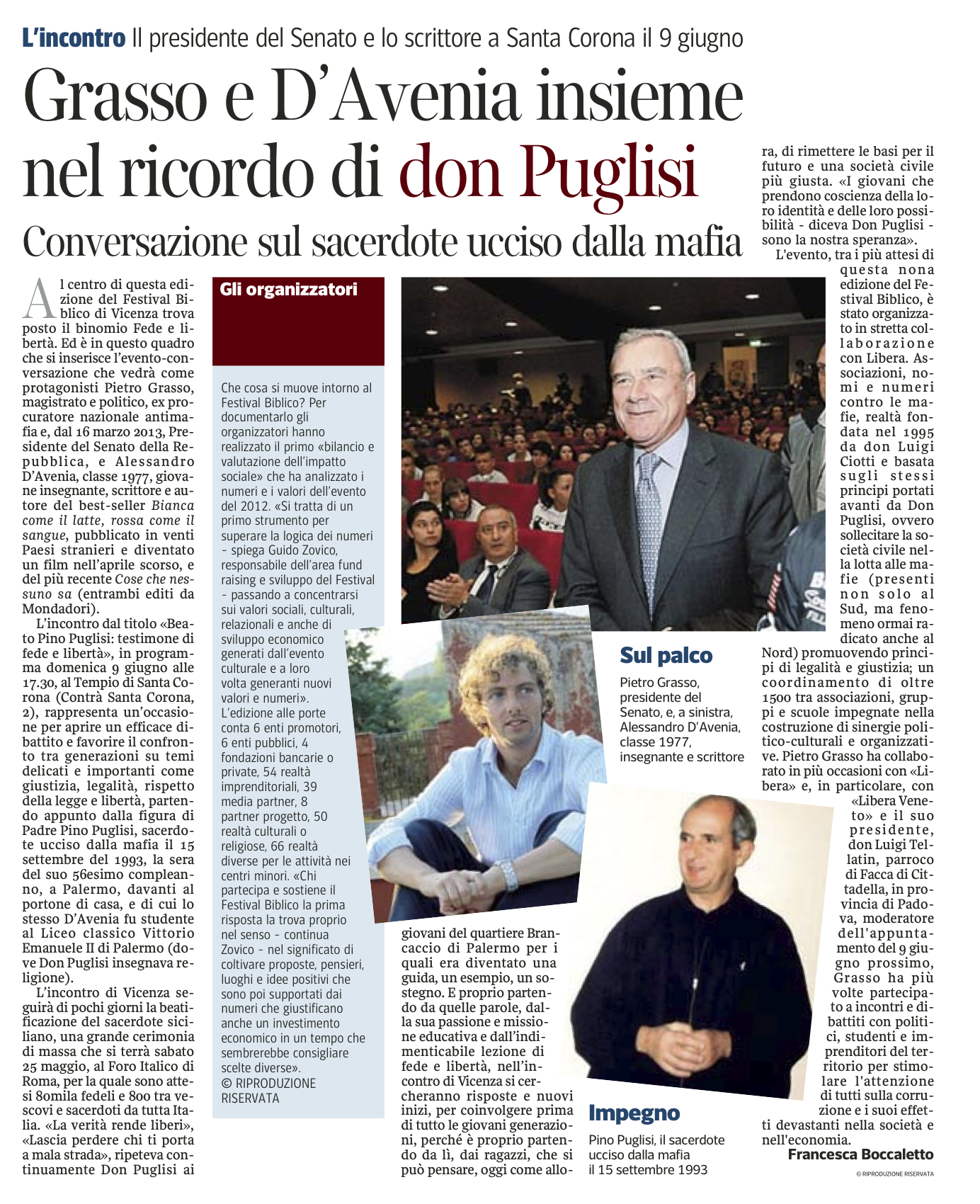 Avrò l’onore di ricordare don Pino insieme al presidente del Senato il prossimo 9 giugno.