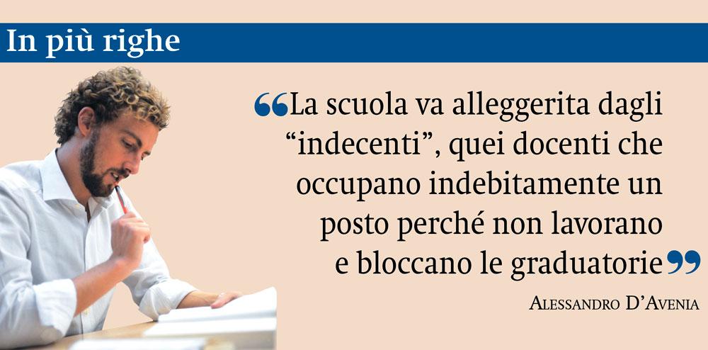 Ecco dove troveremmo impiego per i giovani o i precari che vogliono diventare insegnanti e si vedono sbarrare le graduatorie, perché i loro posti sono occupati da persone che non lavorano e che è impossibile allontanare (solo in questo caso vorrei il preside-sceriffo…). Sono quelli che io chiamo «indecenti».