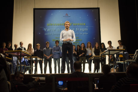 Dalla lettura del “Canto notturno di un pastore errante dell’Asia” fino alla “Ginestra o il fiore del deserto” ieri sera Alessandro D’Avenia ci ha accompagnato attraverso Giacomo Leopardi e il suo errare nel mondo della poesia, al di là dell’immagine dipinta in 180 anni di critica letteraria e ci ha restituito le quattro tappe di una vita spesa alla ricerca di un’armonia tra opposti, tra luce e buio, tra disperazione e speranza, tra ragione e cuore. Una ricerca che investe la vita di ognuno e che mai si deve deporre, per far sì che la vita sia piena e, al rischio di essere infelici, sia però autentica e vera. D’Avenia ci ha regalato un grande affresco della vita del poeta, dipinto con sensibilità ed emozione, in un’ora e mezzo di intervento sul grande palco dell’Auditorium della Gran Guardia su cui ha ricreato una classe di giovani studenti. Un clima familiare a tutti, per cui tutti sono tornati sui banchi di scuola: i numerosissimi giovani accorsi ad ascoltare l’autore di romanzi famosi quali “Bianca come il latte, rossa come il sangue” (Mondadori 2010), che lo hanno lanciato nell’orbita delle stelle della letteratura contemporanea italiana, e i meno giovani che si sono lasciati avvolgere dalla parola del biondo giovane professore siciliano. L’ultimo lavoro, dedicato al poeta di Recanati, “L’arte di essere fragili”, uscito per Mondadori nel mese di Ottobre del 2016, è stato presentato con un racconto che intreccia la biografia dell’autore a quella del grande poeta, perché ciò che conta veramente è l’umanità che c’è in noi, il nome di ogni singolo alunno che ogni mattina si chiama all’inizio della giornata scolastica o il nome di tutti noi, chiamati all’appello del quotidiano nostro vivere. Attraverso il poeta D’Avenia ci interroga dunque sul senso della nostra vita.