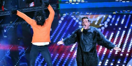Mentre Fiorella cerca di aiutarci a benedire la vita e a fare la volontà di Dio, se c’è, per trascendere questa nostra condizione scimmiesca, Gabbani ci riporta con i piedi per terra, però una volta caduta anche la sua “scimmia si rialza”. Per cosa? Non lo sa nessuno, sa solo che deve continuare a determinare il suo karma per quando si reincarnerà – si spera in meglio -, ma intanto ride, balla, cazzeggia sulle macerie e ci fa sentire meno soli, ci dà fiducia come una barzelletta in mezzo alla tristezza.