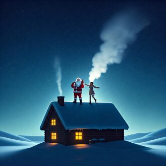 Alcuni di voi mi hanno chiesto nelle loro lettere se esiste Mamma Natale: certo! Come farei senza di lei, soprattutto nei giorni in cui fa così freddo che senza un suo abbraccio mi si gelerebbero il cuore e le mani? Ci dividiamo i lavori da fare e ridiamo tanto grazie alle vostre lettere. Ci siamo conosciuti in una mattina di Sole, cosa che qui accade solo tre giorni all’anno. Lei era vestita di bianco e ballava sopra un tetto. Allora sono salito su dal camino e lei, che non se l’aspettava, è scoppiata a ridere. E così abbiamo ballato insieme su quel tetto e lei profumava di bosco. E sapete che cosa è successo?